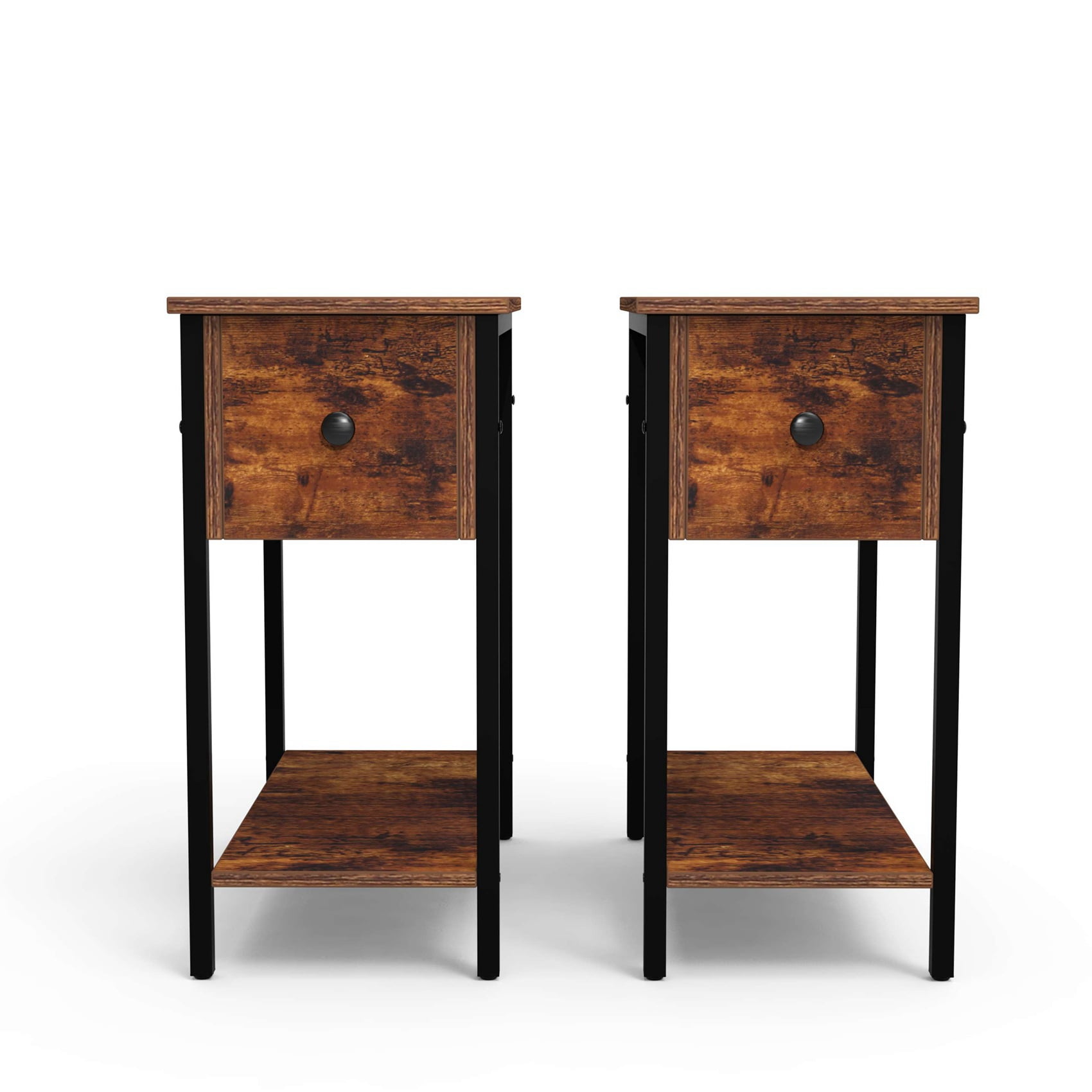 Jvsism Set Of 2 Side Table 2 Tier Nightstand With Drawer Narrow End Table For Small Spaces Look Accent Furniture With Metal Frame Rustic Brown Walmart Com
